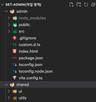 shared ๋๋ ํ ๋ฆฌ์ ์๋ ui์ utils ์๋น์ค๋ ์ผ๋ฐ ๋ฆฌ์กํธ๋ฅผ ์ฌ์ฉํ๋ค. ๋ณ๋์ ๋น๋๊ฐ ํ์์๋ ๊ฒ๋ค์ด๊ณ , vite์์ ์คํ ๋ฆฌ๋ถ์ ์ธํ ํ๊ณ ๋ฐฐํฌํ๋๊ฒ ์ ๋ณด๊ฐ ๋ณ๋ก ์์ด์ ์ผ๋ฐ์ ์ธ ๋ฐฉ๋ฒ์ ์ ํํ๋ค. ํด๋น ๋๋ ํ ๋ฆฌ๋ก ๊ฐ์ ๊ฐ๊ฐ cra cna ๋ฑ์ ํฌํ๋ฆฟ์ผ๋ก ์์ฑํด์ค๋ค.