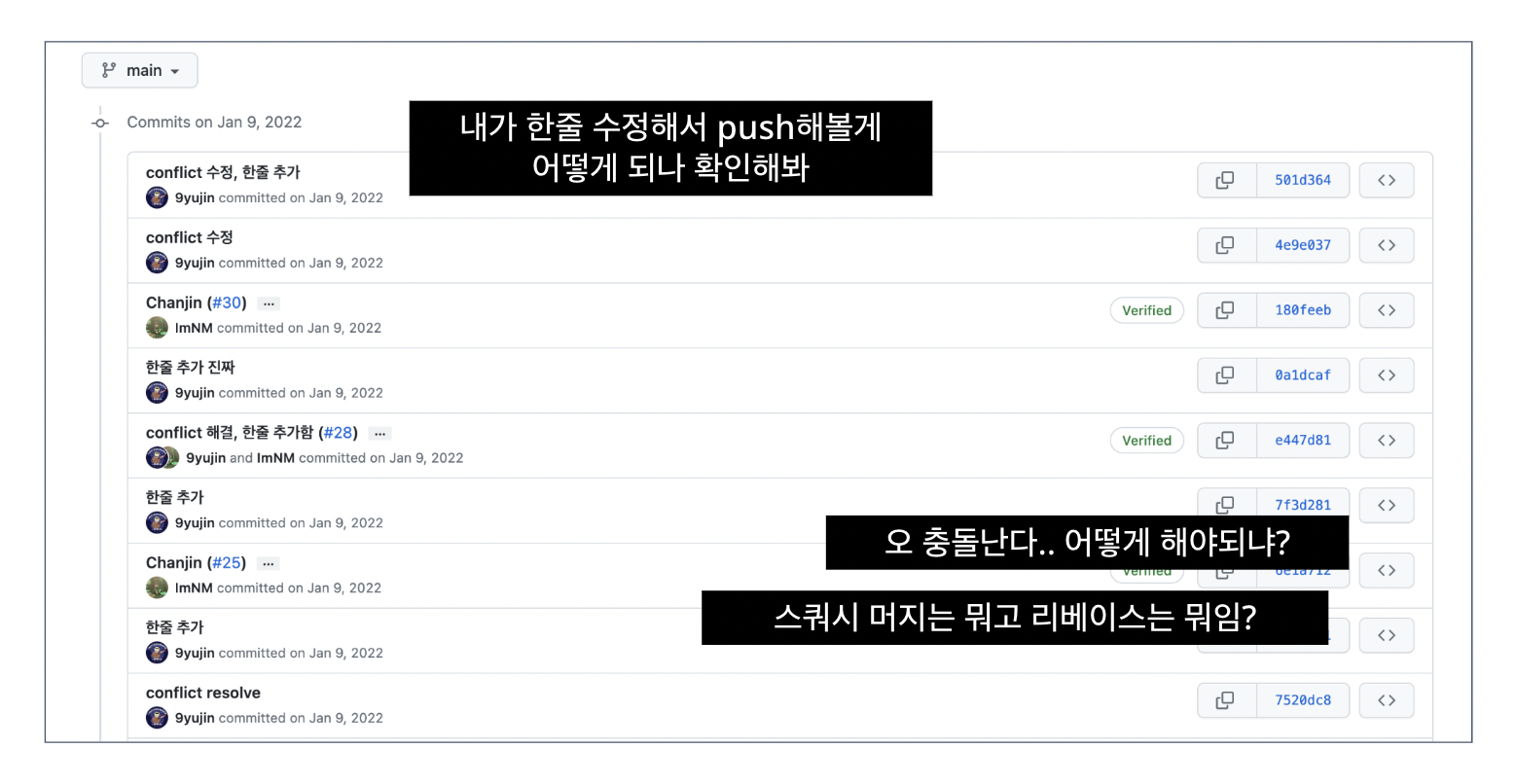 GDSC์์ ์น๊ธฐ์ด ์คํฐ๋ ๋ค์ผ์๋๋ถ ์ฌ๊ธฐ ๋ง์ด ๊ณ์ ๊ฐ์?? ์ ๋ฒ์ฃผ์ ๊น๊ณผ ๊นํ๋ธ์ ๋ํด์ ๋ฐฐ์ฐ์ ๊ฑธ๋ก ์๋๋ค. ์ฌ๋ฌ๋ช ์ด ํ์ ์ ํ ๋ ๋ธ๋์น๋ฅผ ํ๊ณ , ๊ฐ์ ์์ ์ ํ๊ณ , ํ๋ฆฌํ๋ฅผ ์ฌ๋ฆฌ๊ณ , ๋ณํฉ์ ํฉ๋๋ค. ์ ํฐ ์ฌ์ง์ด ์ด๋ฐ๊ฒ๋ ๋ชฐ๋์ด์. ์น ๊ธฐ์ด ์คํฐ๋ 2์ฃผ์ฐจ์ ๋ฐฐ์ฐ๋ ๊ฒ๋ค์์.