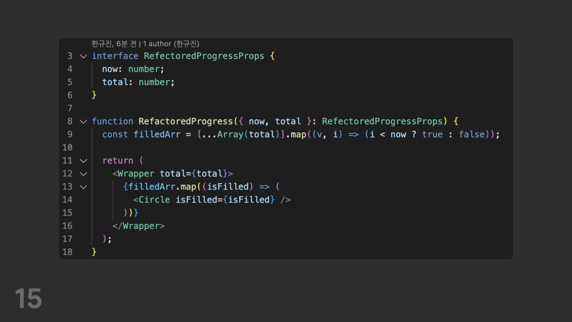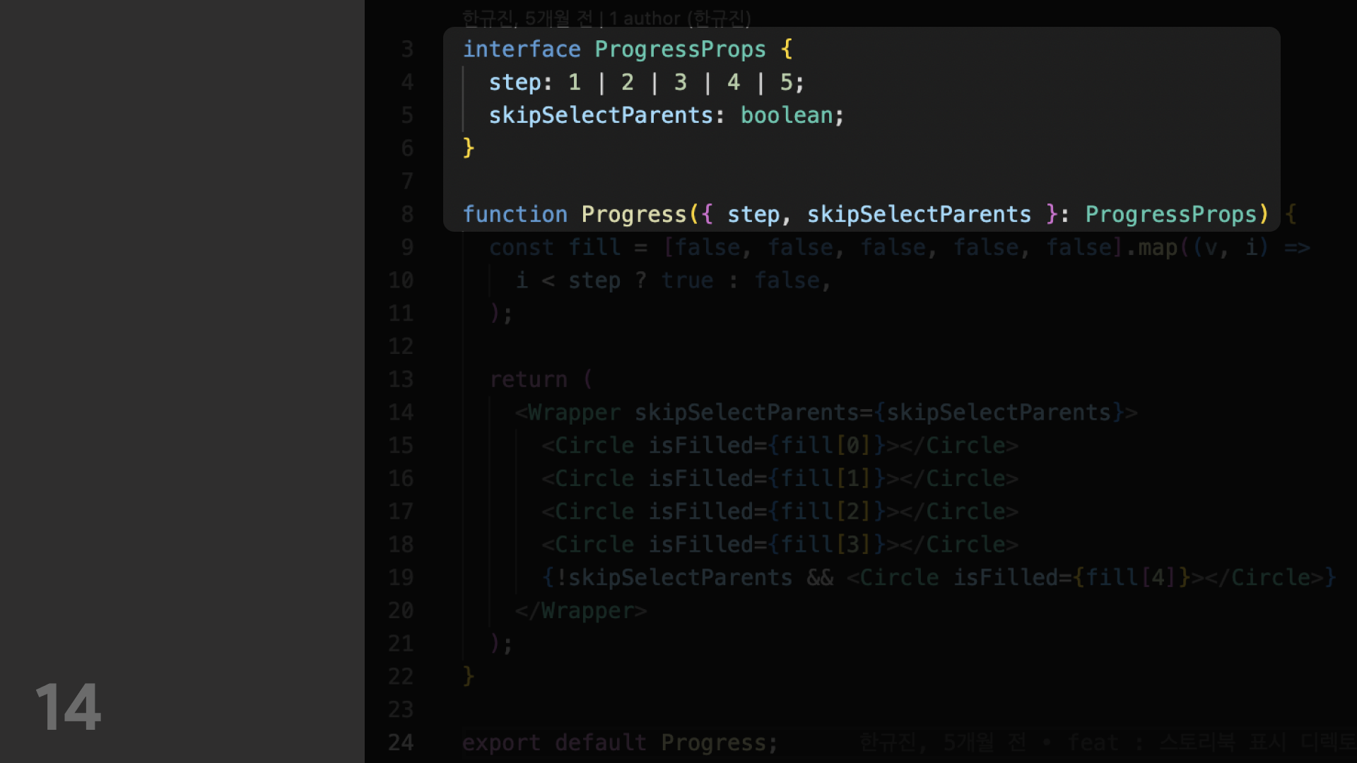 (15) ํ๋ฉด๊ณผ ๊ฐ์ด ์ฝ๋๋ฅผ ์์ ํด๋ณด์์ต๋๋ค. step๊ณผ skip์ด์ฉ๊ตฌ๋ผ๋ ์ด๋ฆ์ผ๋ก ๋ฐ์ ์ธ์๋ฅผ, now์ total์ด๋ผ๋ (๋๊ธธ๊ณ์ฝํ๊ธฐ)์ ๊ด๋ จ์๋ ๋ณดํธ์ ์ธ ๋ค์ด๋ฐ์ผ๋ก ๋ฐ๊พธ์์ต๋๋ค. ์ ์ฒด ๊ฐ์๋ 4-5๊ฐ์์ ์ ํ์์ด total๋ก ๋ฐ์ ๊ฐ ๋งํผ ๋๊ทธ๋ผ๋ฏธ๋ฅผ ๋ง๋ค์ด์ค๋๋ค. ์ด๋ ๊ฒ ๋๋ฉด ์คํ ์ด ๋ช๊ฐ๊ฐ ์๋ ์ง ์ฌํ์ฉํ ์ ์๊ฒ ์ฃ .